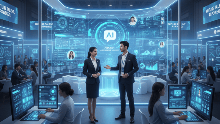 Proses rekrutmen otomatis dengan screening CV, wawancara video, dan verifikasi pintar.
